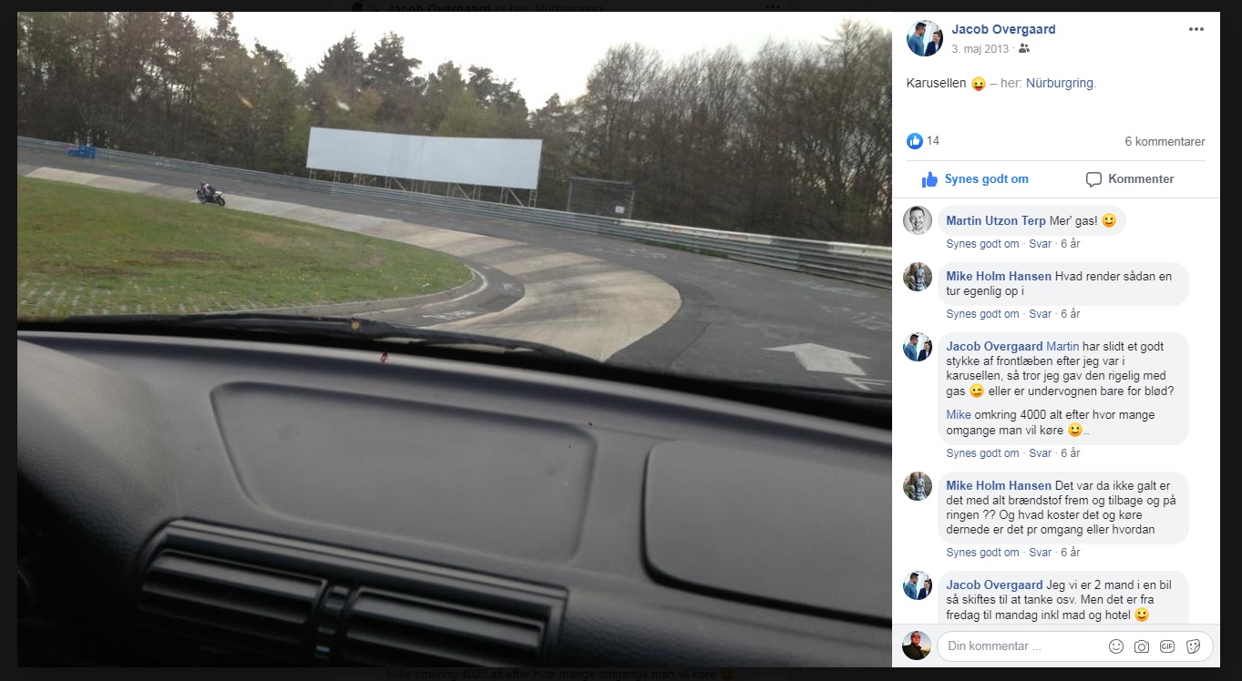 Og ellers vedhæfter vi lige herunder nogle fotos fra Jacobs profil, fra PRÆCIS samme sving som på billedet I bringer øverst på siden. På billederne herunder beskriver han selv at være i karrusellen (som er navnet på dette sving). Lagt på nettet samme dato, hvor vi befandt os dernede. Vi var mange der var afsted sammen og flere der kører i min bil, som jeg også har billeder af.