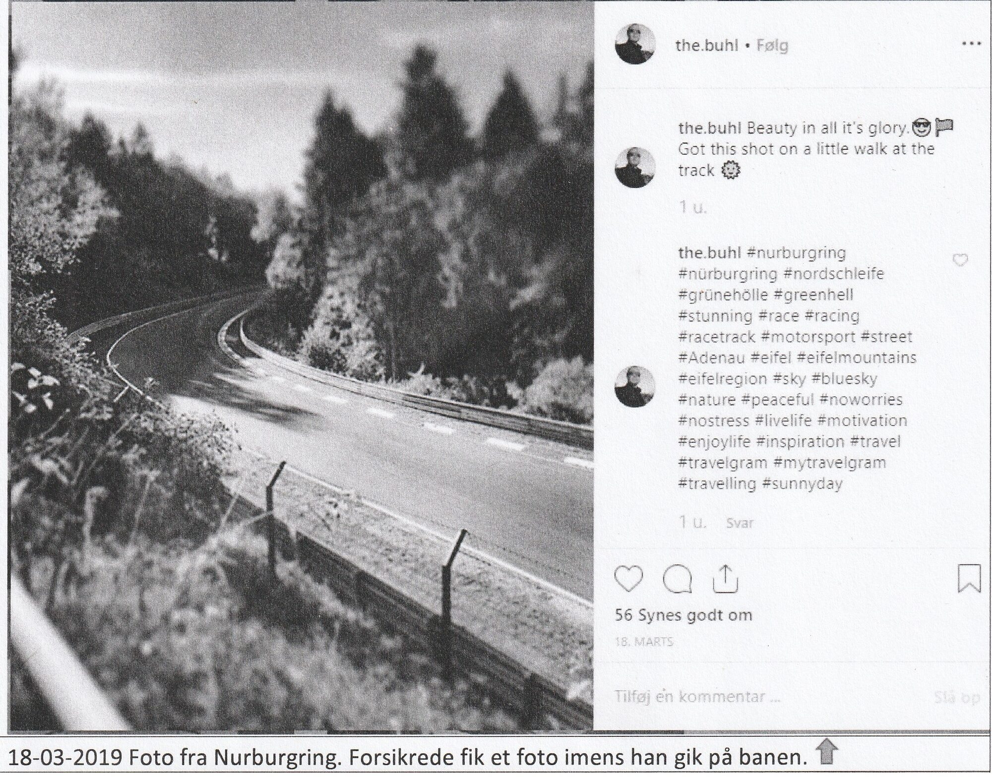 Velliv skriver. Foto fra Nürburgring. Forsikrede fik et foto imens han gik på banen.