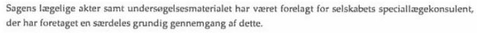 Og nedenstående er, hvad speciallægen noterer sig. Han nævner intet om datoerne!
