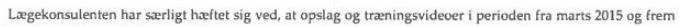 Hvilke ”træningsvideoer” fra marts 2015 og frem har Vellivs speciallægekonsulent hæftet sig ved? Den absolut første træningsvideo der nogensinde er delt, sker i slutningen af 2015. Og den førstevideo som Velliv sender til KBJ, er fra den december 2015.